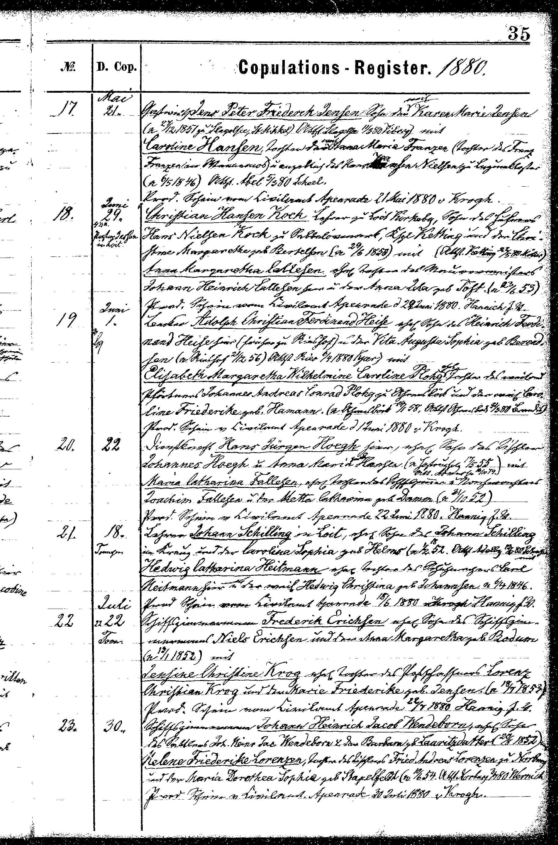 • Bopæl: Bylderup Bov, 1891. Maria blev gift med Hans Jørgen Hoegh, søn af Johannes Höeg og Anna Marie Hansen, den 22 Jun. 1880 i Aabenraa Kirke*. (Hans Jørgen Hoegh blev født den 17 Maj 1855 i Hostrup Skov, Ensted, Aabenraa, dåb den 28 Maj 1855 i Ensted Kirke og døde den 26 Nov. 1881 i Aabenraa, Sønderjyllands Amt, Denmark*.) |