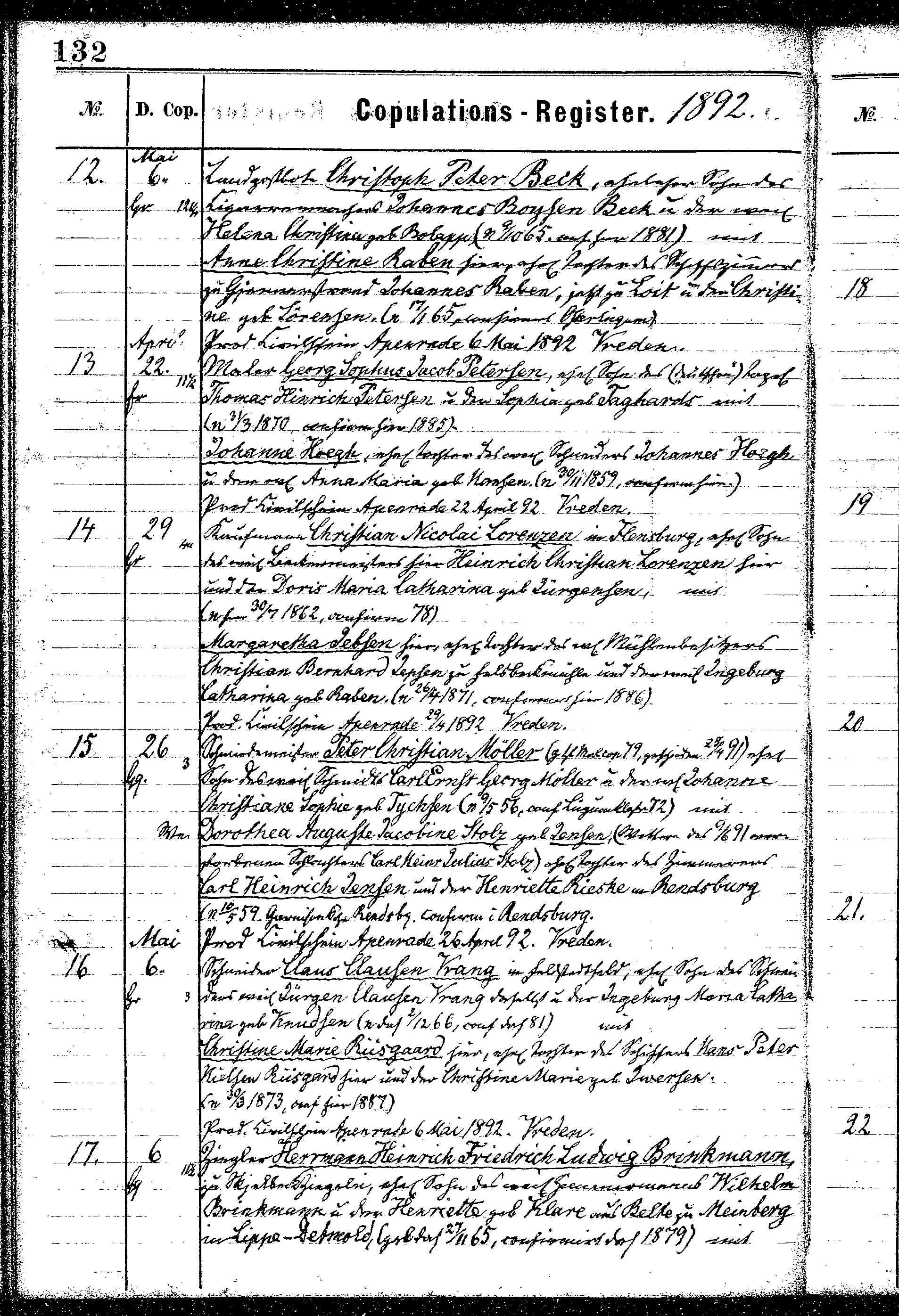 • Konfirmation, 1885. Georg blev gift med Johanna Hoegh, datter af Johannes Höeg og Anna Marie Hansen, den 22 Apr. 1892 i Aabenraa Kirke*. (Johanna Hoegh blev født den 30 Nov. 1859 i Aabenraa og dåb den 11 Dec. 1859 i Aabenraa Kirke*.) |