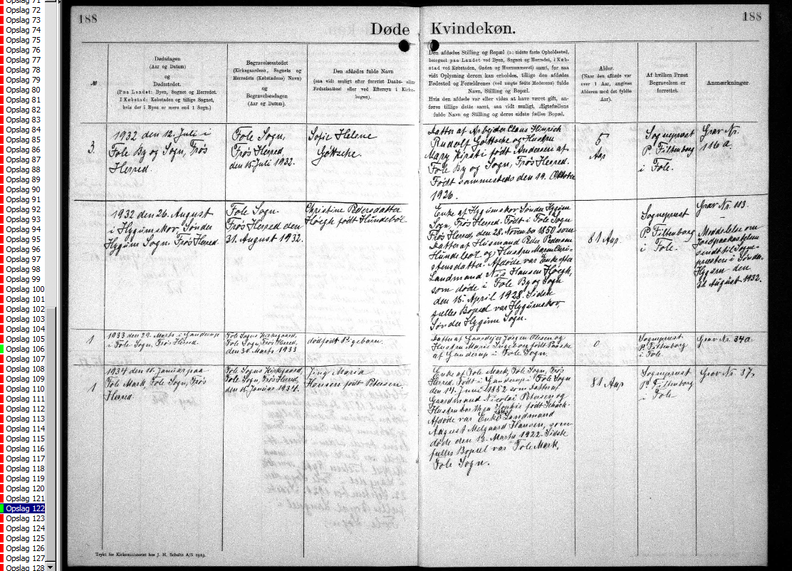 • Bopæl, 5-11-1924, Fole. • Bopæl: FT, 1930, Sdr. Hygum. Christine blev gift med Nis Hansen Hoegh, søn af Johannes Höeg og Anna Marie Hansen. (Nis Hansen Hoegh blev født den 16-3-1850 i Sønder Hostrup, døbt den 1-4-1850 i Ensted Kirke*, Aabenraa, Denmark, døde den 15-4-1928 i Fole by og blev begravet den 20-4-1928 i Fole Kirke*.) |
