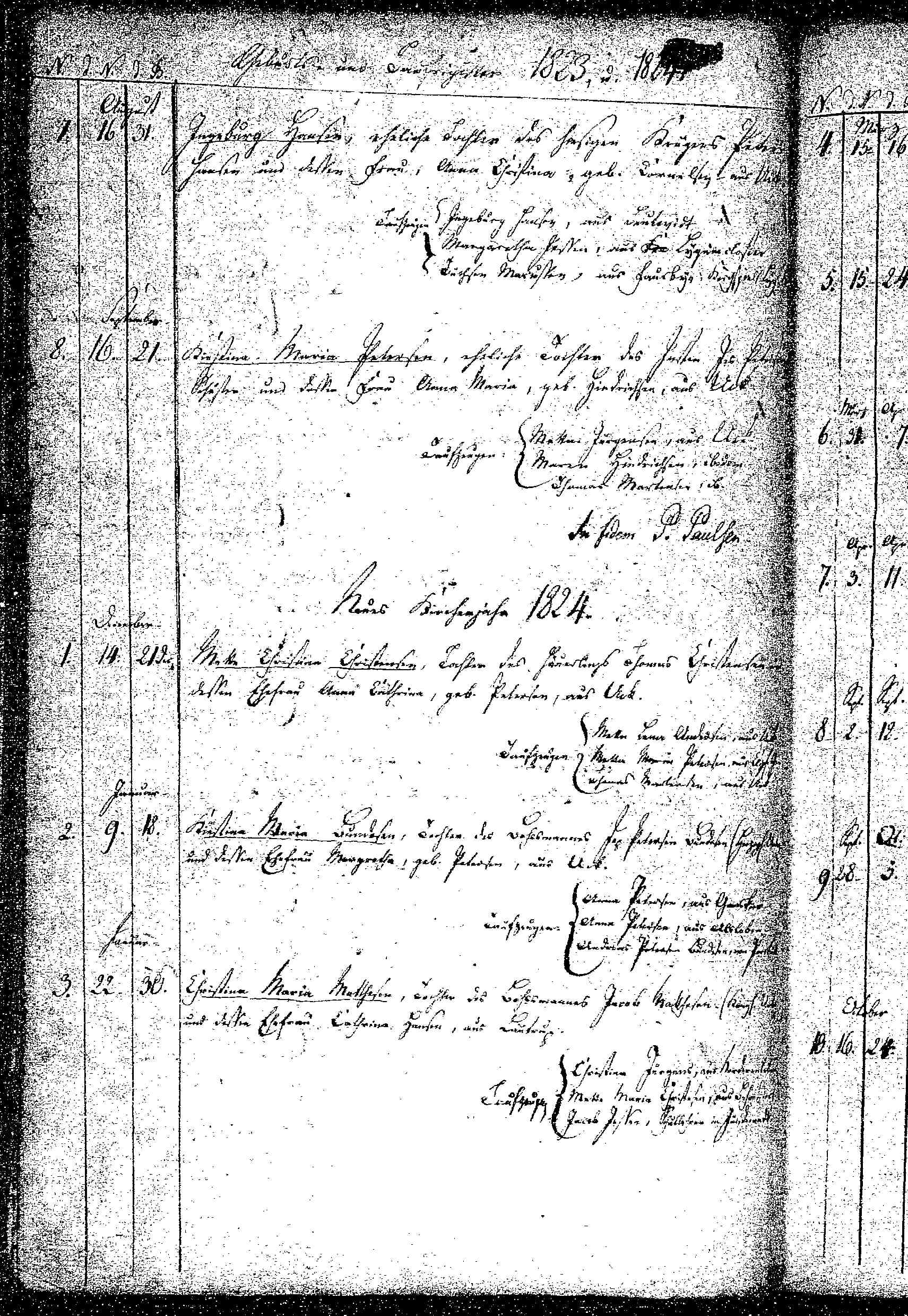 Født 9 Januar, døbt 18 Januar Kirstina Maria Bundesen Tochter des Bohelsman Jep Petersen Bundesen (Hüfener) und dessen Ehefra Margrethe geb. Petersen aus Uck. Taufzaugen: Anna Petersen aus G??; Anna Petersen aus Alsleben; Andreas Petersen Bundesen aus Peersbüll.