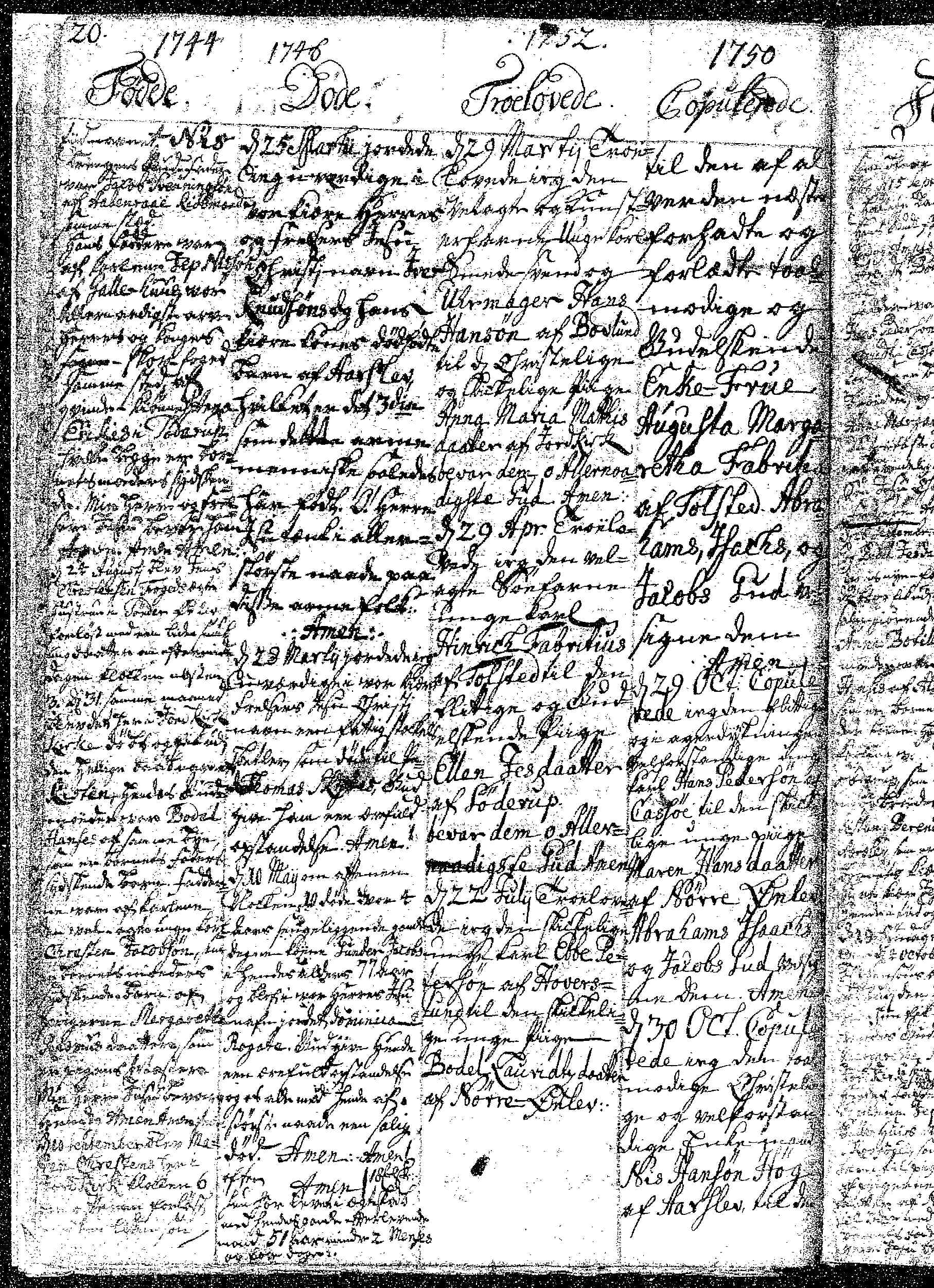 AO Hjordkær Kirkebog, 1741-1771 opslag 19-20 side 20-21 copulerede: 30 Oktover 1750 Copulerede, .................. Nis Hansön Hög af Aarslev til pigen Ingeborg Iversadatter af Torp