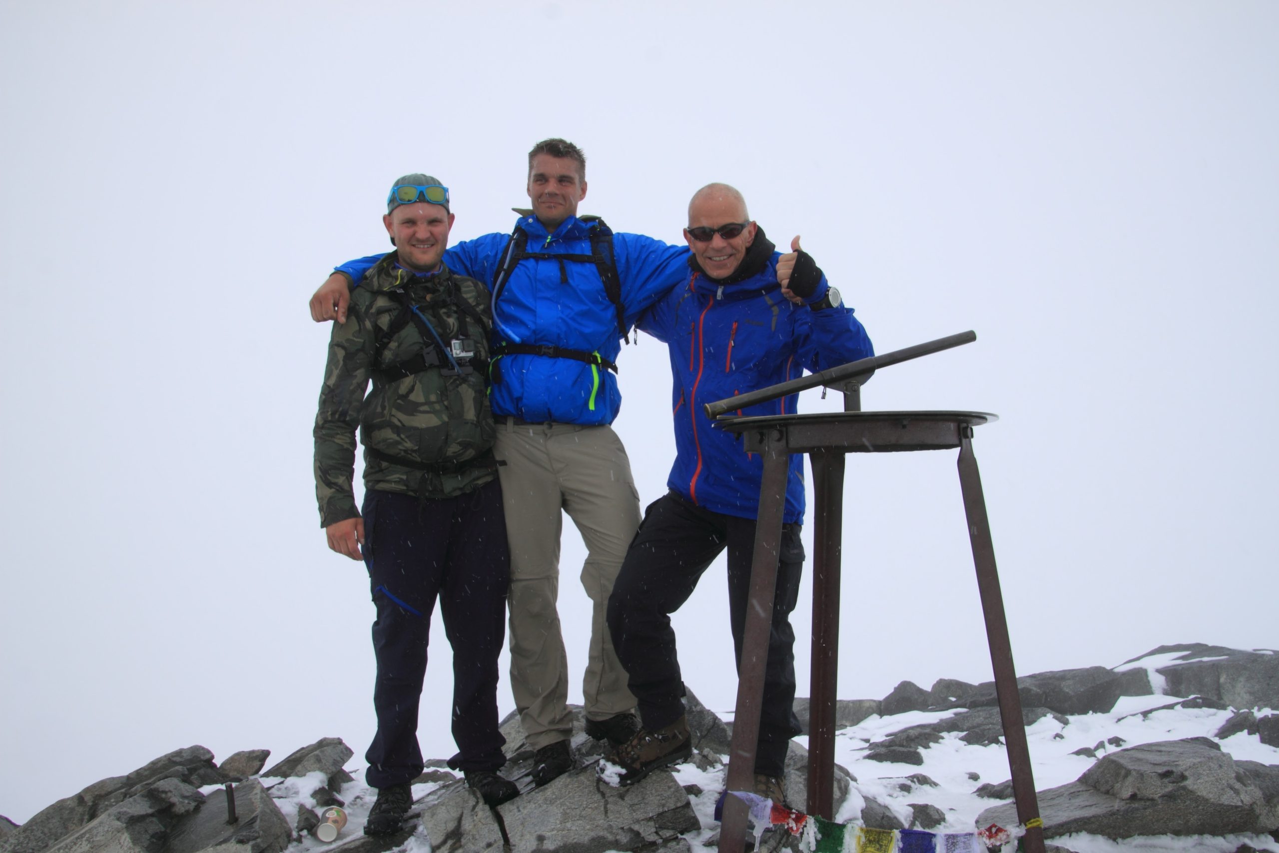 Det viste sig senere på vejen op, at det var en længere opstigning vi skulle over 2 andre bjergtoppe inden vi nåede Norges højeste punkt. Det var både en lang og hård opstigning, hvor vi både oplevede solskin, tåge og snefald på toppen, med utrolige smukke og pragtfulde udsigter til bjergtoppe, dale, gletscher, blomster og bjergbeplantning. Vi startede opstigningen kl. 10.00, kl 1300 holdt vi frokost pause på vejen op. Vi havde madpakke og kaffe med til turen som var tiltrængt efter 3 timers opstigning. KL 14.30 nåede vi endelig toppen. Stolte var vi alle 3 på toppen efter at ha vandret op og ned ad bjergsten og gennem dybt sne.