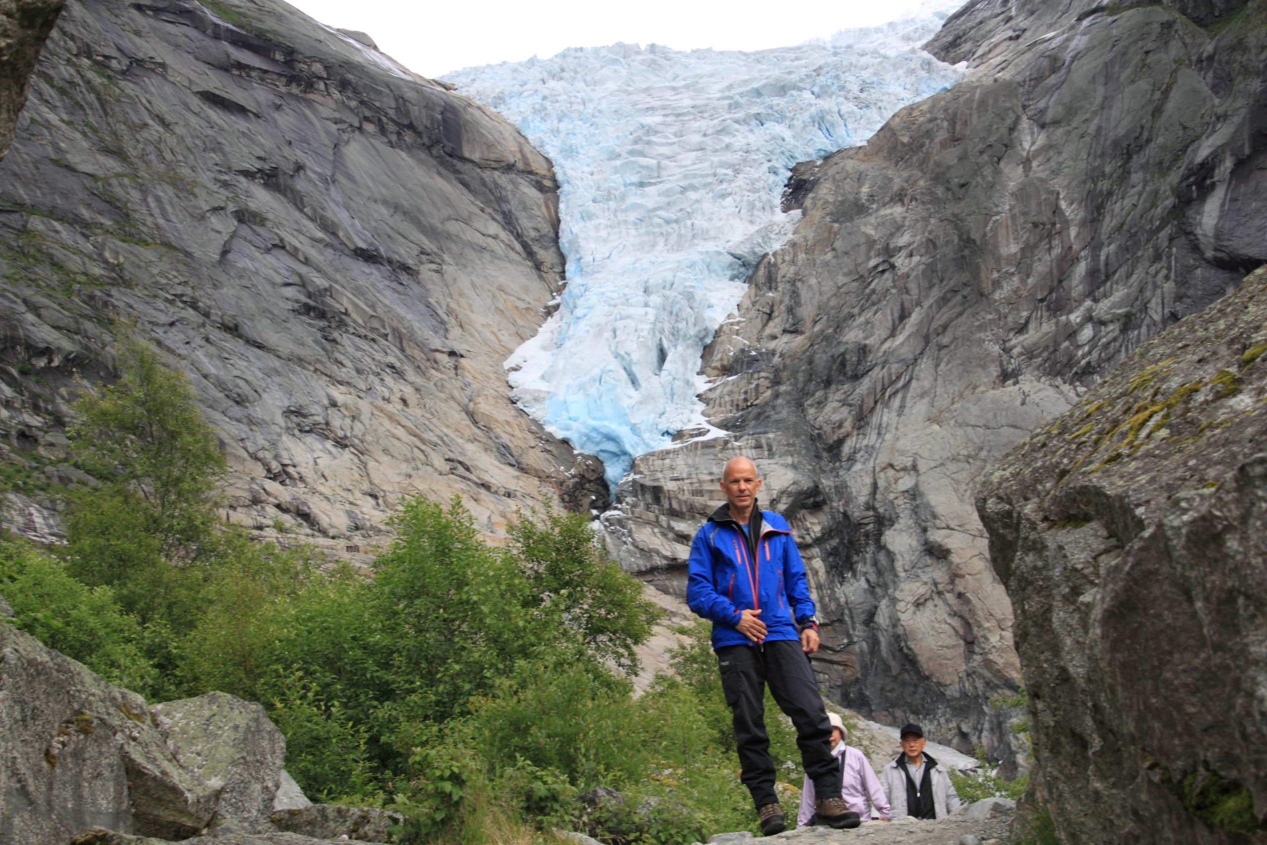 3. Juli stod i familiens tegn og sigtseeing, en dag hvor Henrientte og hendes kusine og familie deltog. Dagen tur gik til Briksdalsbre gletscher, en smuk køretur langs bjergsøerne og op i dalen. Fra p-pladsen pg Turistcenteret skulle vi gå 3-4 km op ad et stisystem hvor vi fulgte smeltevandet fra gletscheren. Forbi Kleivafossen et kæmpe vandfald og for enden af stien ankom vi til hvor gletscheren for ca 20 år siden gik til. Klimaændringer og den globale opvarmning har sat sit tydelig præg i naturen.