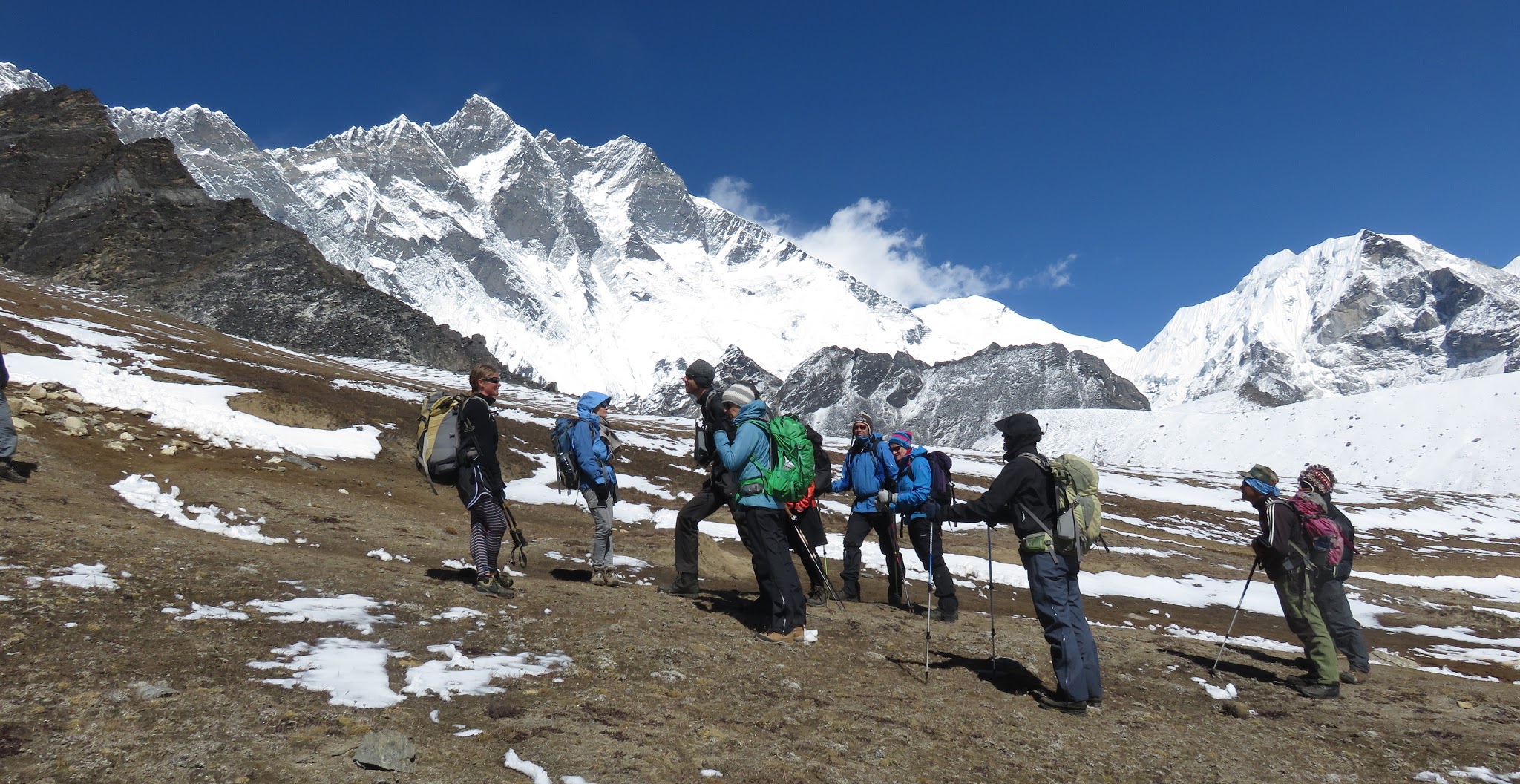 Vi forlader den populære Everestdal og drejer for morgenstunden op i Chukkungdalen. Det er et goldt og barskt landskab, der åbner sig og det kunne vi mærke, at vi er kommet op i højden. Heldigvis var stigningen til Chukkung (4.750 m) – der er en mindre bebyggelse kun bestående af få tehuse – medgørlig. Vi tilbagelagte distancen på 4 timer og var fremme ved vores tehus til frokosttid. Om eftermiddagen var der toptur til Chukkung Ri 5.546 m for de friske deltagere. Toppunktet Chukkung Ri giver spektakulære udsigter mod øst til blandt andet 8.000 m bjerget Makalu og til 7.000 m bjerget Baruntse (7.200 m) og Ampu Laptza passet. Ud af Topas 10 deltagere var der kun 4 deltagere der kom op på toppen, højdeforskellen kom for hurtigt for mig, fik begynde hovedpine fortegn til mulig højdesyge. Men jeg kom for første gang på turen over de 5000 meter, jeg og de 5 andre deltagere tog ½ delen af topturen for at få flere højdemeter. Vi fik dog alle en storslående udsigt fra Chukkung RI bjergside ud over flere bjergmassiver.