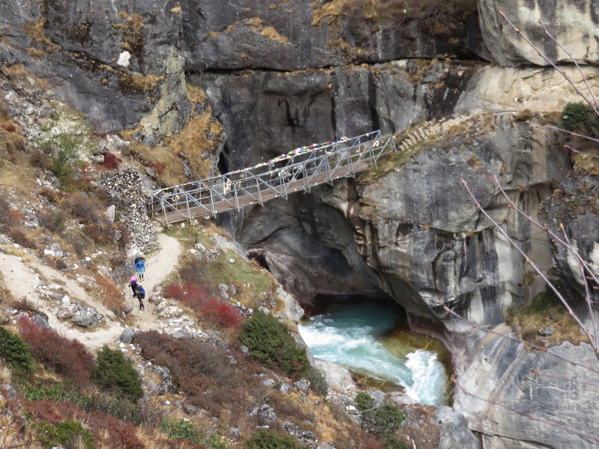 I dag skulle vi følge Thamedalen tilbage mod Namche Bazaar. Det var som at træde et skridt tilbage i tiden, da mange af de landsbyer vi passerede, er gamle traditionelle sherpalandsbyer. Vi befand os i en af de dele af Khumburegionen, hvor den traditionelle levevis stadig dominerer. Området og vandrestien er også en vigtig handelsvej for tibetanere, så vi delte stien med både tibetanere og deres yakkaravaner. De kommer gående fra Tibet, via høje og udfordrende bjergpas, til Namche Bazaar, for at sælge deres tibetanske og kinesiske varer på det lokale marked. Snart passerer vi landsbyen Thamo, terrænet begynder at se bekendt ud. Vi kom tilbage til Namche Bazaar som vi igen skulle overnatte i, det begynder igen at dufte af civilisation, vi måtte igen spise kød som vi ikke har fået siden sidst vi forlod Namche. Så der skulle spises og festes da vores yngste deltager blev 30 år.